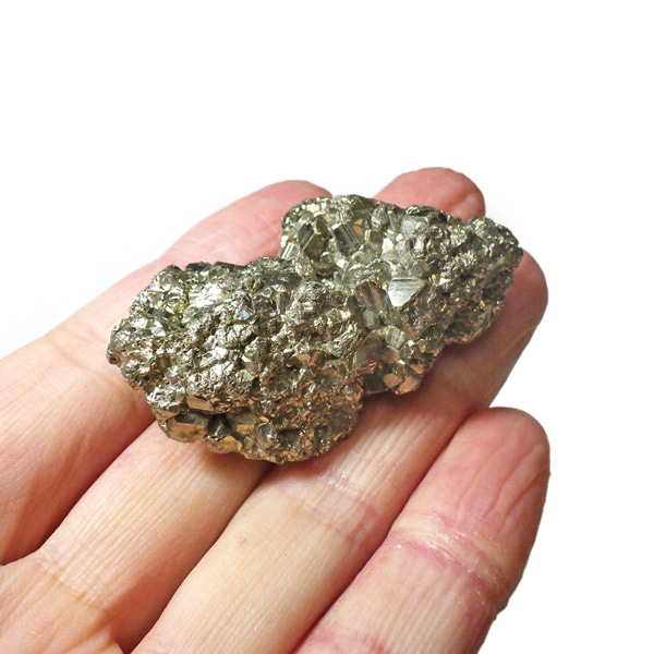 ペルー産のパイライト原石です。コロッとかわいらしいサイズでキラキラが信じられないほどまぶしい原石。パイライトは、火山活動の活発な場所で生成されます。結晶は大変整った六面体や八面体です。金と間違えるほどのゴールドで、硫黄と鉄で構成された鉱物の一種です。
