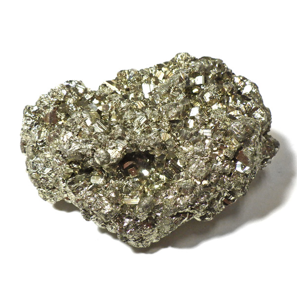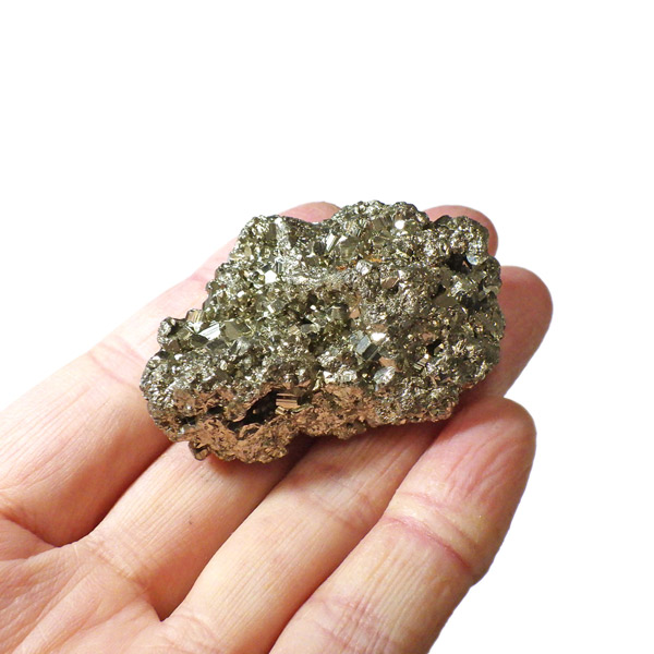 ペルー産のパイライト原石です。コロッとかわいらしいサイズでキラキラが信じられないほどまぶしい原石。パイライトは、火山活動の活発な場所で生成されます。結晶は大変整った六面体や八面体です。金と間違えるほどのゴールドで、硫黄と鉄で構成された鉱物の一種です。