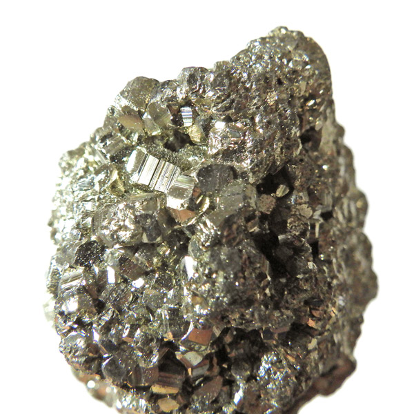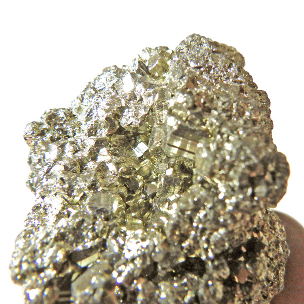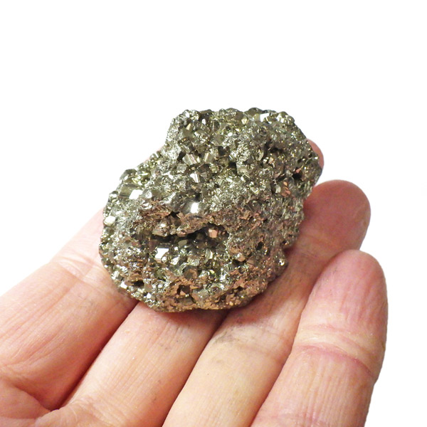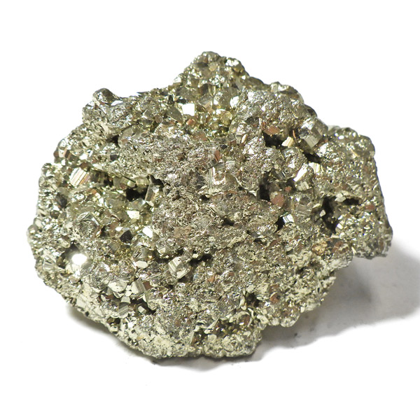 ペルー産のパイライト原石です。コロッとかわいらしいサイズでキラキラが信じられないほどまぶしい原石。パイライトは、火山活動の活発な場所で生成されます。結晶は大変整った六面体や八面体です。金と間違えるほどのゴールドで、硫黄と鉄で構成された鉱物の一種です。