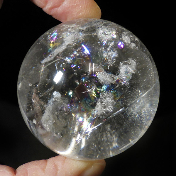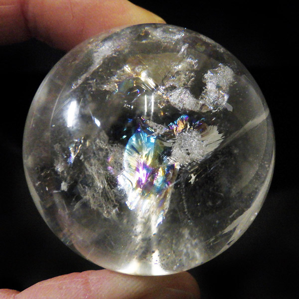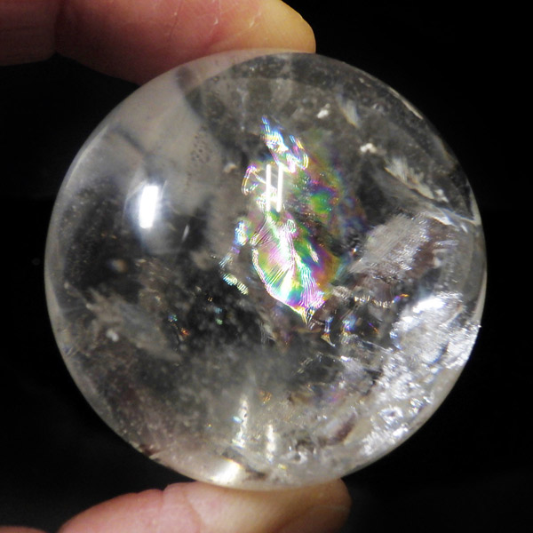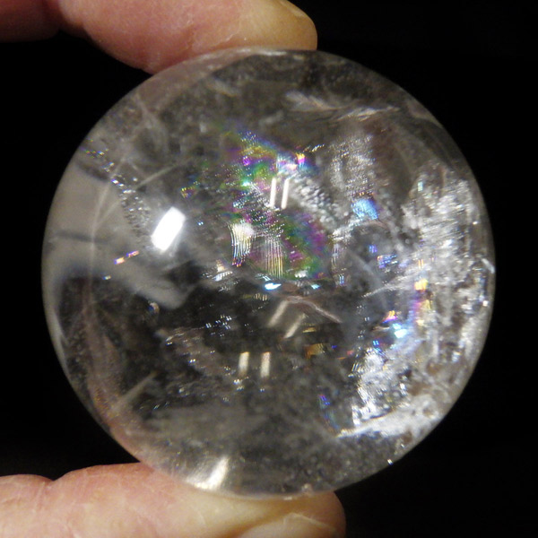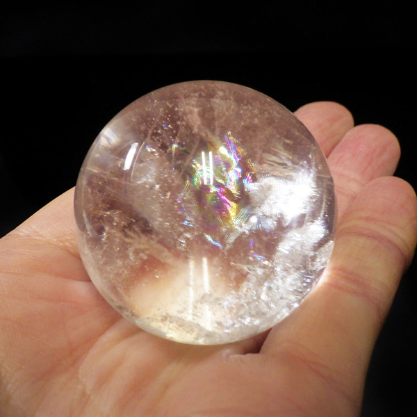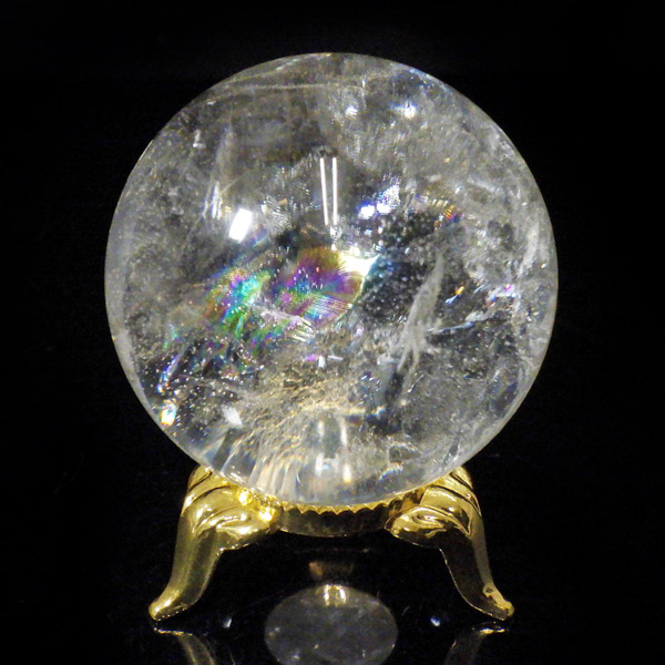 水晶球 直径43mm レインボー水晶 丸玉 スフィア ブラジル産 金属製台付き