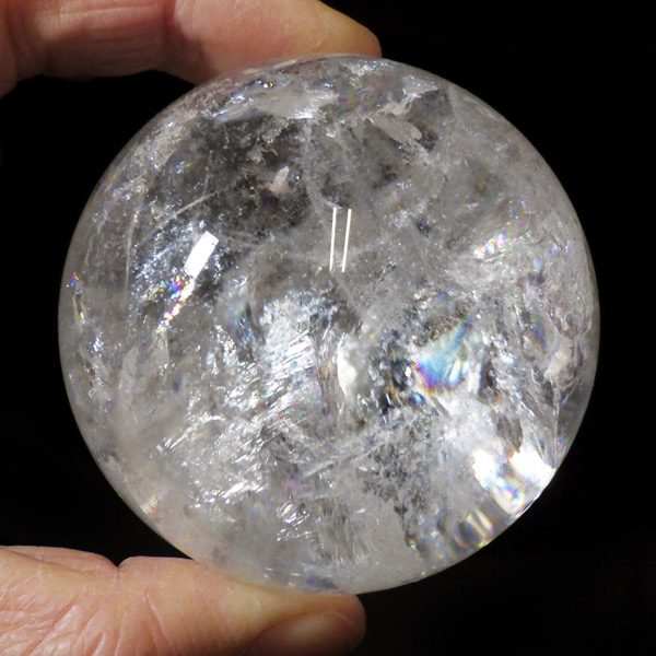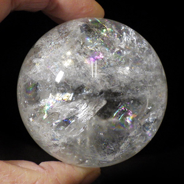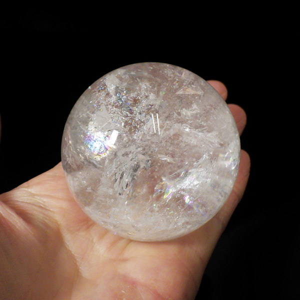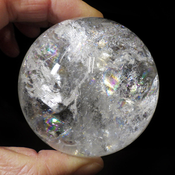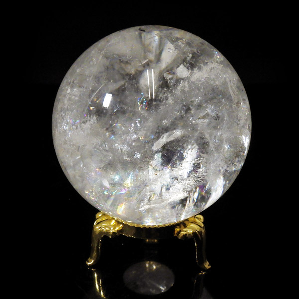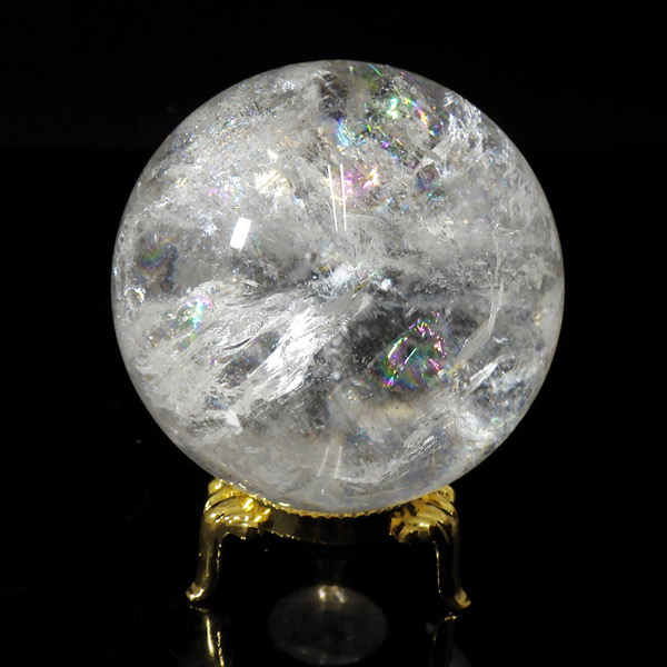 水晶球 直径63mm レインボー水晶 丸玉 スフィア ブラジル産 金属製台付き