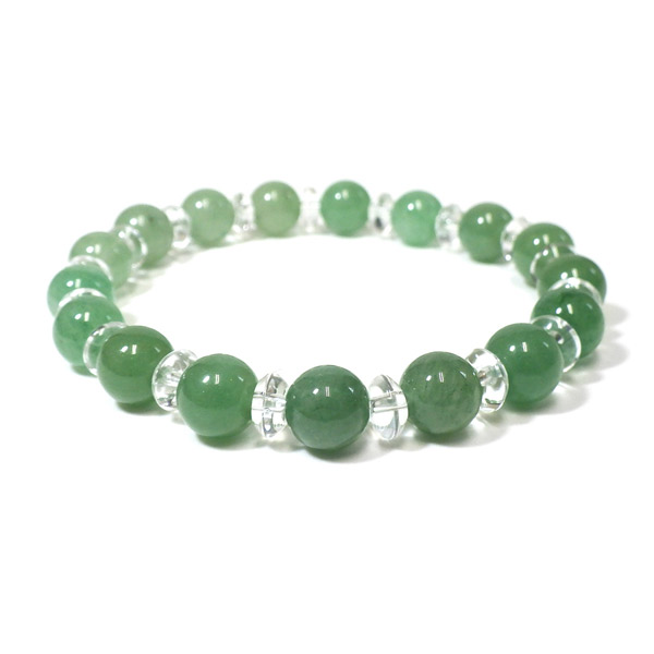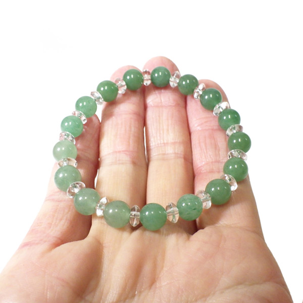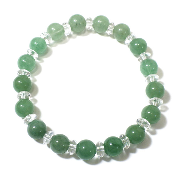 アベンチュリンと水晶のブレスレット 8mm玉 内周16cm