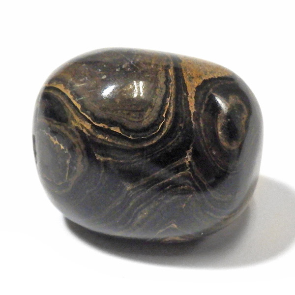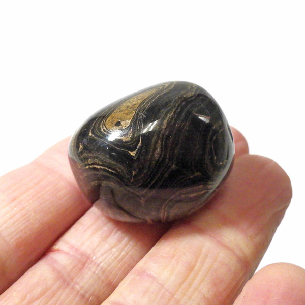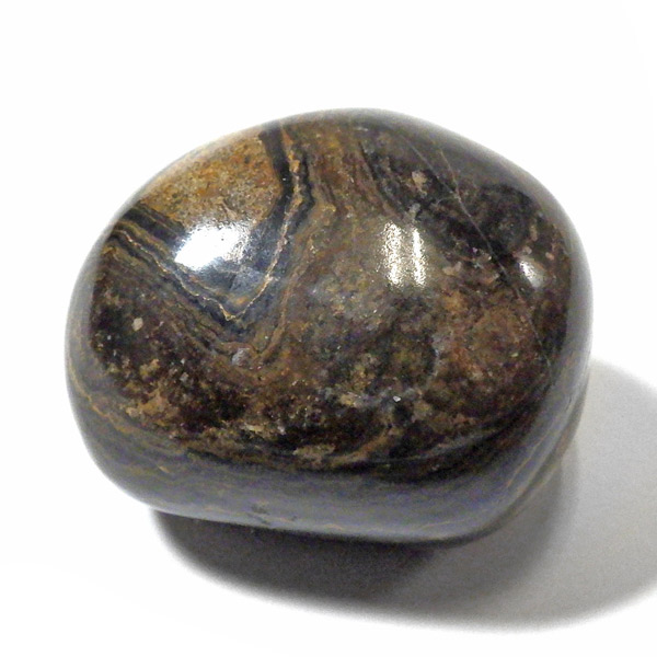 ペルー産、ストロマトライトのタンブルです。ストロマトライトは30億年前以上、シアノバクテリアなどの藍藻類の死骸と泥粒などによって作られる層状の構造をもつ岩石のことです。海水、淡水域どちらからも見つかり地球上に広く分布していたことが伺えます。長い年月をかけて堆積した岩石で縞模様の広さから当時の様子が伺えることなどから化石に分類されています。