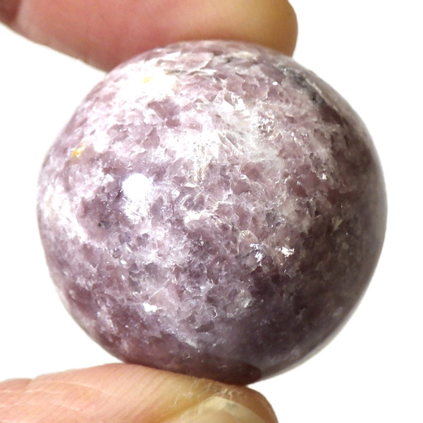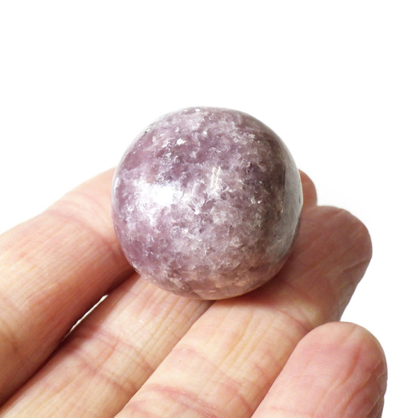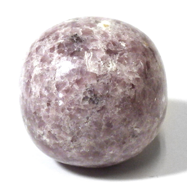 ペルー産のレピドライト、タンブルです。レピドライトの最大の特徴は、落ち着いたダークパープルの色合いと、光の当たる角度によって見られる、キラキラとした美しい輝きです。雲母の一種で、リチウムを多く含んでいるため、和名を「リチア雲母」と言います。このキラキラとした輝きは、雲母によるものです。