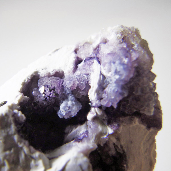 アメリカ・ユタ州産のティファニーストーン原石です。ティファニーストーンはアメリカ・ユタ州のトーマス山脈のみで産出される希少な石。名前はこの石の模様がティファニー創始者子息ルイス・カムフォート・ティファニーの制作したステンドグラス作品に似ていることから由来します。また、「オパライズド・フローライト」の名前でも知られ、主にフローライトがオパール化・石化したものです。やわらかなホワイトと深みのあるパープルが織りなすコントラストが非常に美しく、まるで抽象画のような模様が魅力の一点。母岩の表情や色の混ざり合い方にも個体差があり、自然が創り出した唯一無二の景色をお楽しみいただけます。