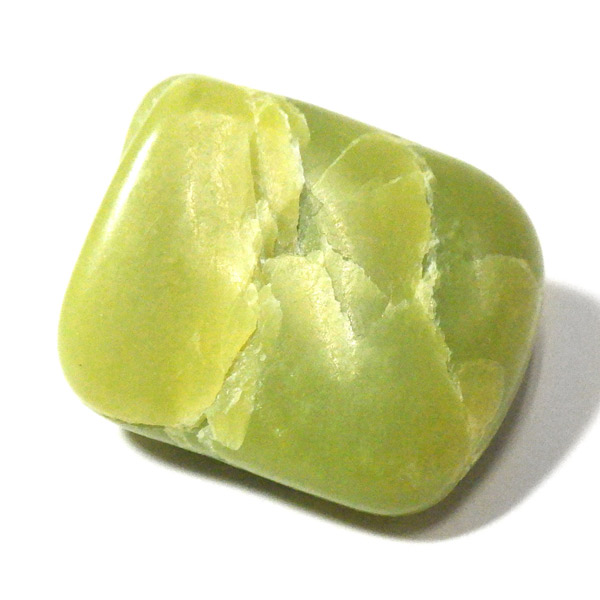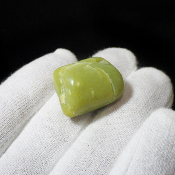 アメリカ・ワシントン州産のワシントンサーペンティン(ヒーラーライト)、タンブルです。 ワシントンサーペンティン(ヒーラーライト)は、明るいライムグリーン色をしており、やわらかな感触があります。パッと見た感じは黄色の印象が強いと思いますが、良く見てみると黄色ではなくもっと複雑で独特の色合いをしていることが分かります。アメリカの北西部で新しく発見されたケイ酸マグネシウムで、マグネサイト鉱脈から、マグネサイトと一緒に発掘されます。