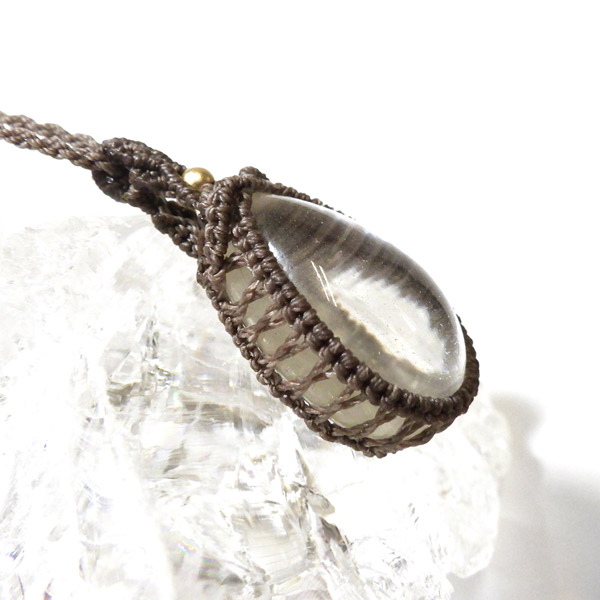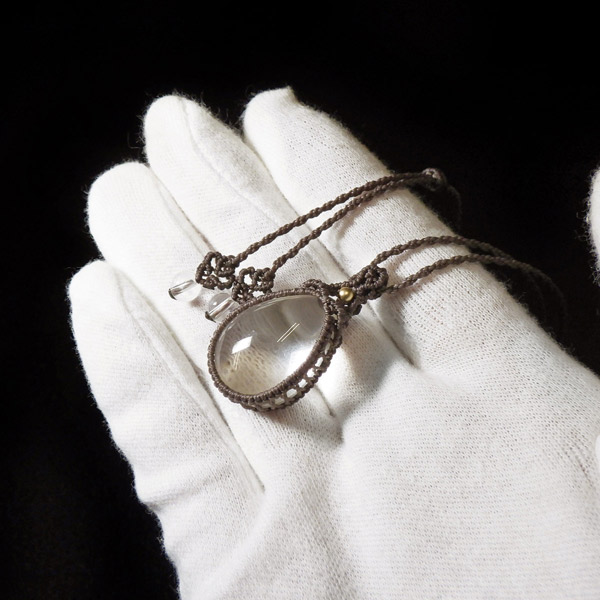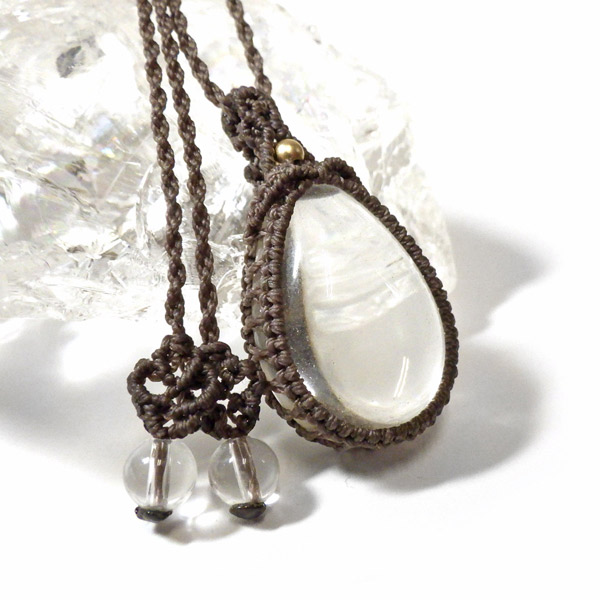 ブラジル産のクリアクォーツ(水晶)を使用したマクラメペンダントです。