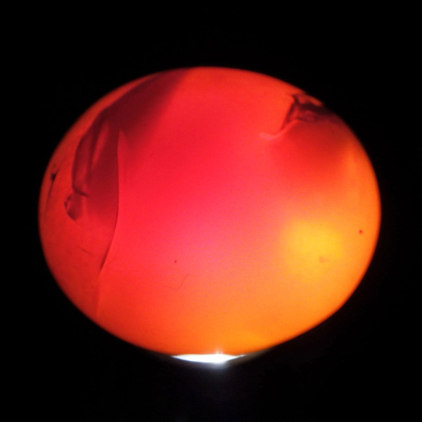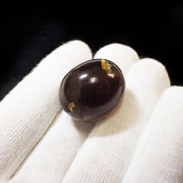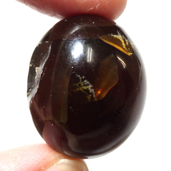 インドネシア産のアンバー(琥珀)、タンブルです。 松柏類の樹脂が3000万年以上の時を経て化石化したものです。 アンバーという名前は、古代アラビア語の「アンバール(海に漂うもの)」が由来です。インドネシアのスマトラで採取されるアンバーは石炭層の中から採れるのが特徴で、落ち着いた色合いのものが多いです。ブランデーのような深い色合いのアンバー内に斑点に似た濃い色の部分が見られます。スマトラアンバーは白熱光の下では赤みがかった色合いを示し、ブラックライトなどを使い、紫外線の下では青い蛍光を示す光学的特徴も持っています。色が綺麗なことはもちろん光を通しても綺麗で美しいです。