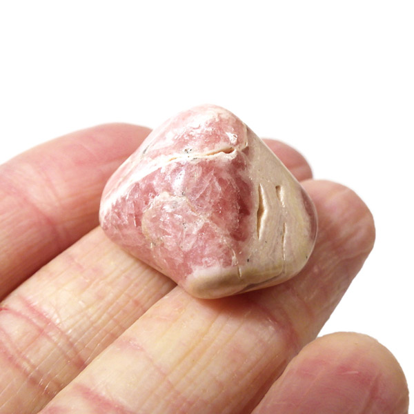 アルゼンチン産のインカローズ、タンブルです。インカローズというこの通称は、かつてインカ帝国が栄えたといわれるアンデス山脈から多く産出され、石をカットした面に、まるでバラの花を思わせる美しい模様が現れたことからそう呼ばれるようになりました。明るいピンクのインカローズで透明感もある品質の良いものになります。