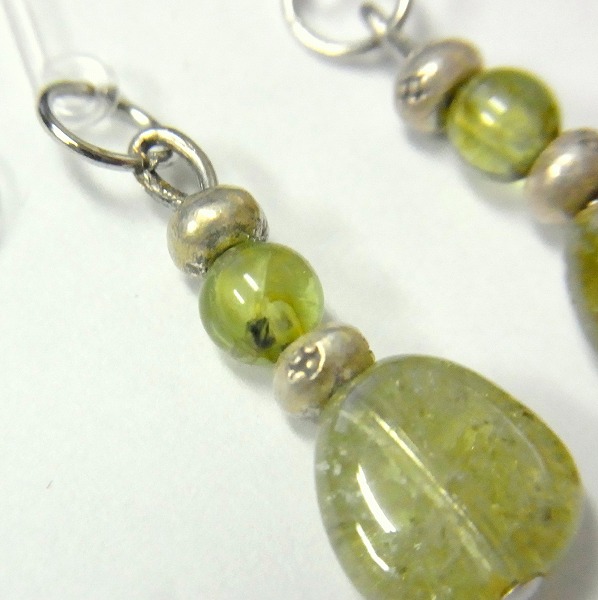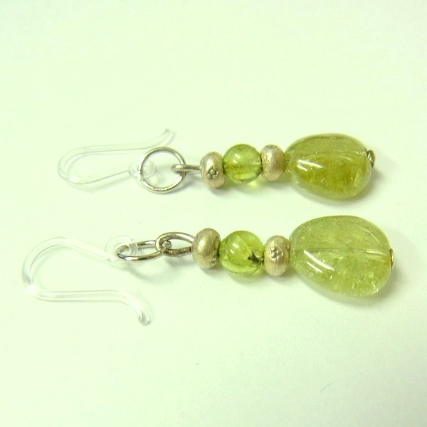 ペリドットとカレン族のシルバーを使用したピアスです。短めの長さなのでさりげなく着用できます。