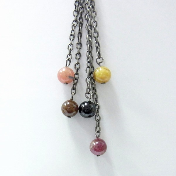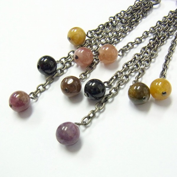 長さの違うチェーンに様々な色のトルマリンをつけました。