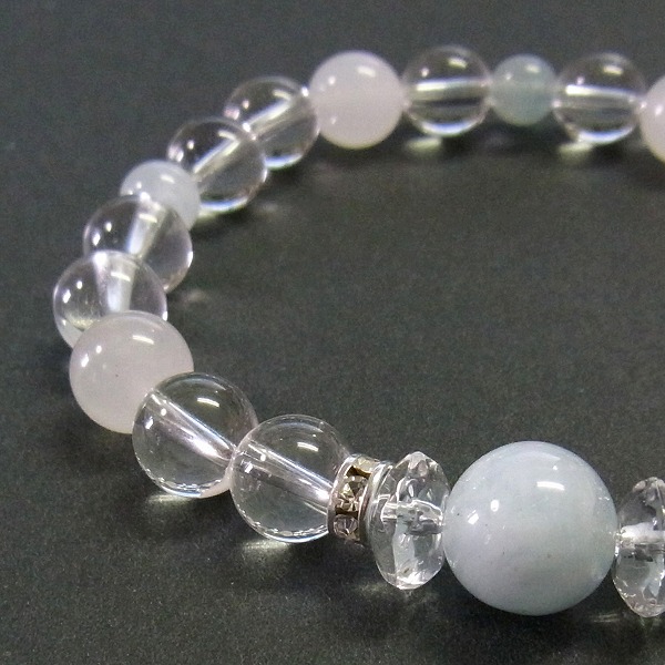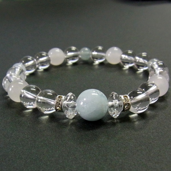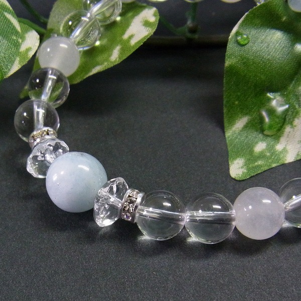 素材: アクアマリン・ホワイトメノウ・水晶・ロンデル