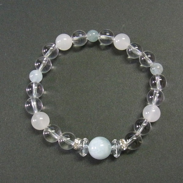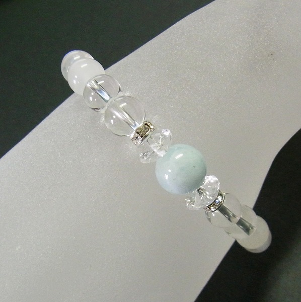 内周16cm アクアマリン×10mm1玉、ホワイトオニキス×4玉 水晶ボタンカット2個