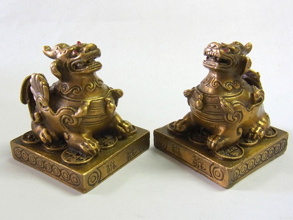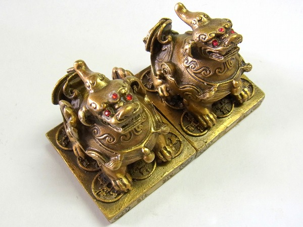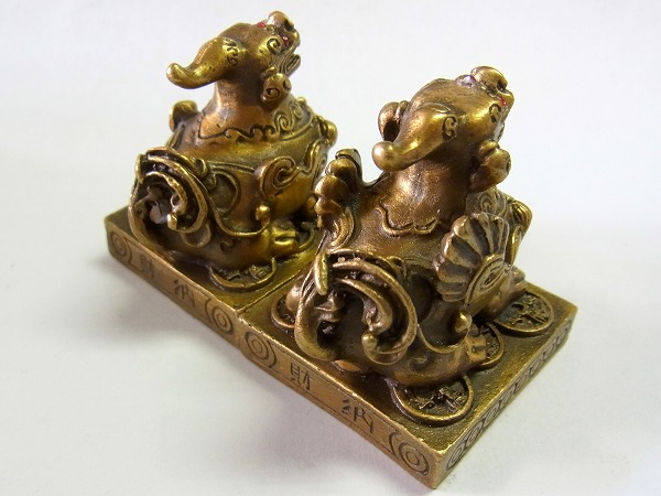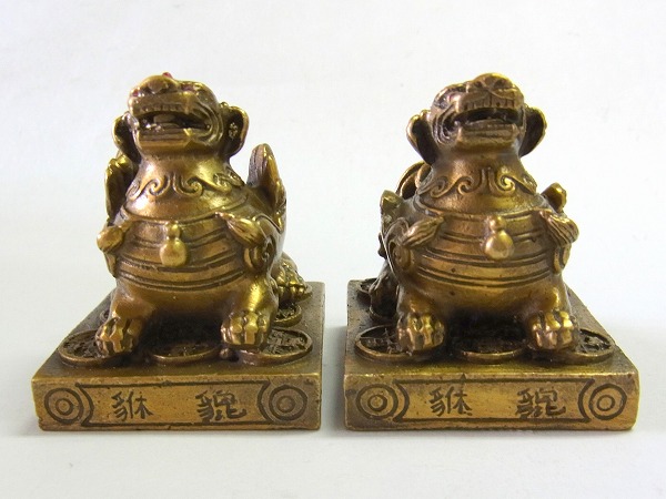 貴金属を好んで食べ物とし、それを出すお尻の穴がないことから、現在では財運・蓄財のシンボルとされています。龍亀(ロングイ)と一緒に置くと、更に良いといわれています。