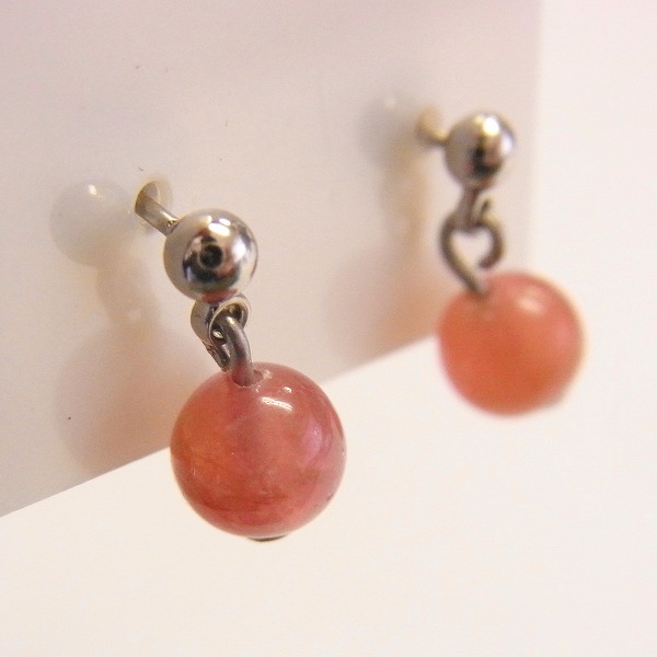 高品質のインカローズの6mm玉をシンプルに仕上げた高級感あるかわいいオリジナルピアスです。