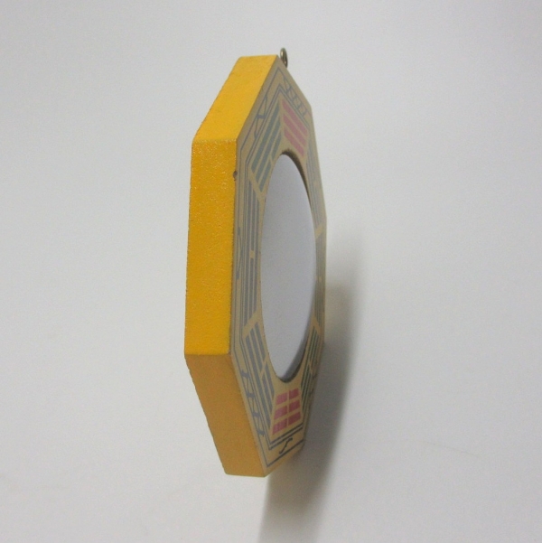 鏡と八卦を組み合わせた八卦鏡。凸面鏡は、鏡の部分が出っ張っており光りを拡散させるため、邪気を反射して散らしてしまう作用を持つとされます。明らかに悪い方位や場所、人、などが有る場合には凸面鏡が最適です。