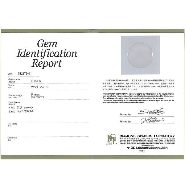 ブラジル産の最高級天然本水晶球を「社団法人 宝石貴金属協会」発行の鑑別書付でお届けします。