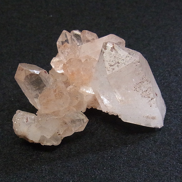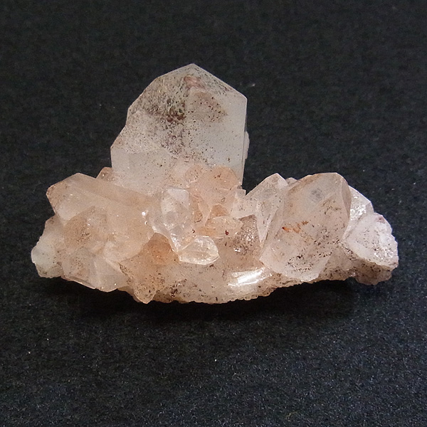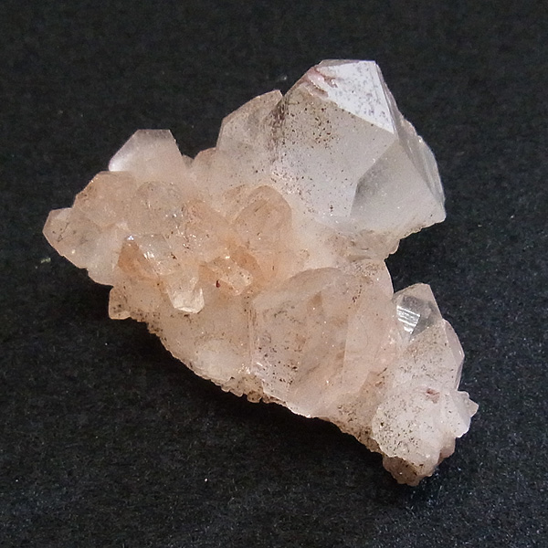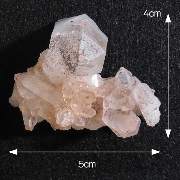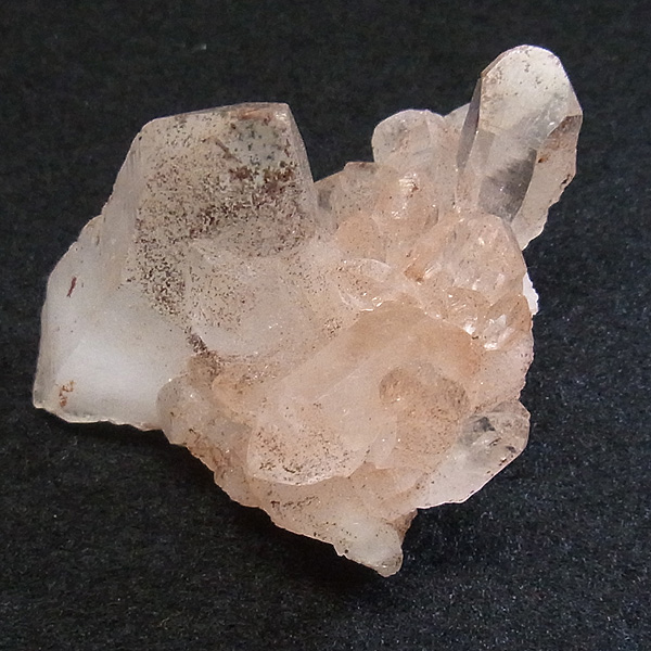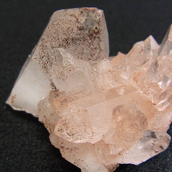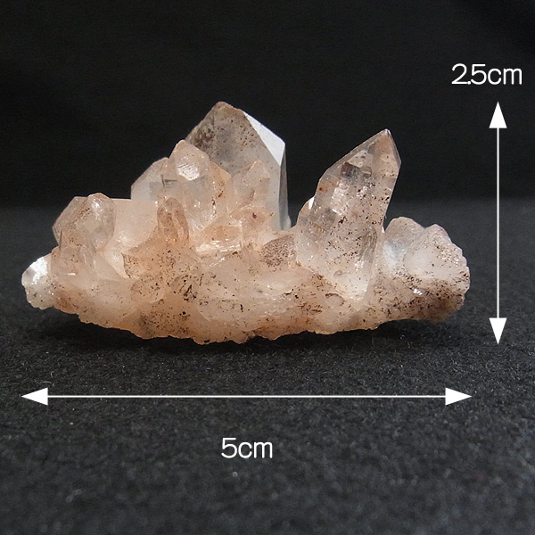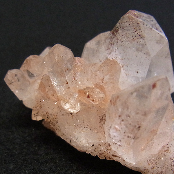 ピンク色の水晶といえばローズクォーツが有名ですが、それとは別で土壌に含まれる赤褐色をした酸化鉄により表面や母岩部がピンク色になっています。