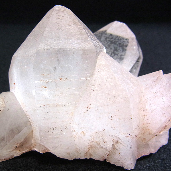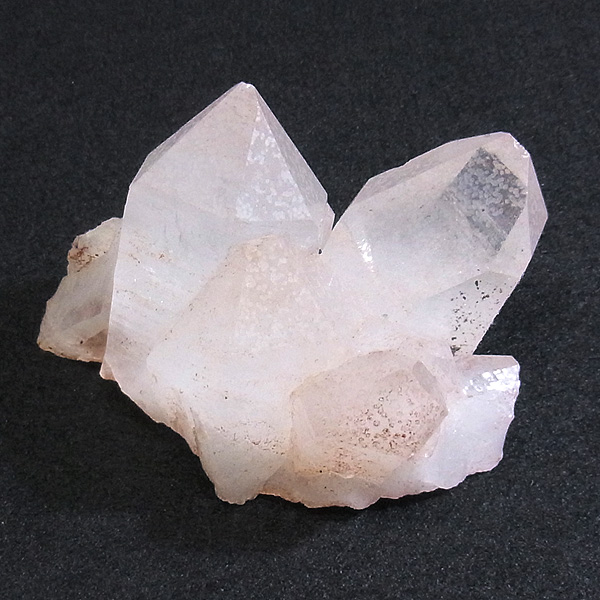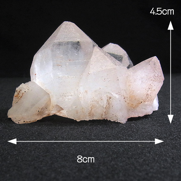 ピンク色の水晶といえばローズクォーツが有名ですが、それとは別で土壌に含まれる赤褐色をした酸化鉄により表面や母岩部がピンク色になっています。