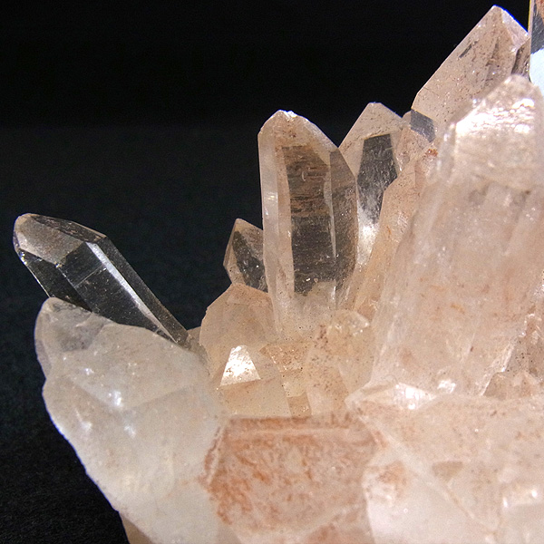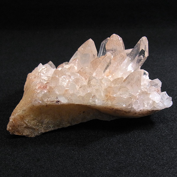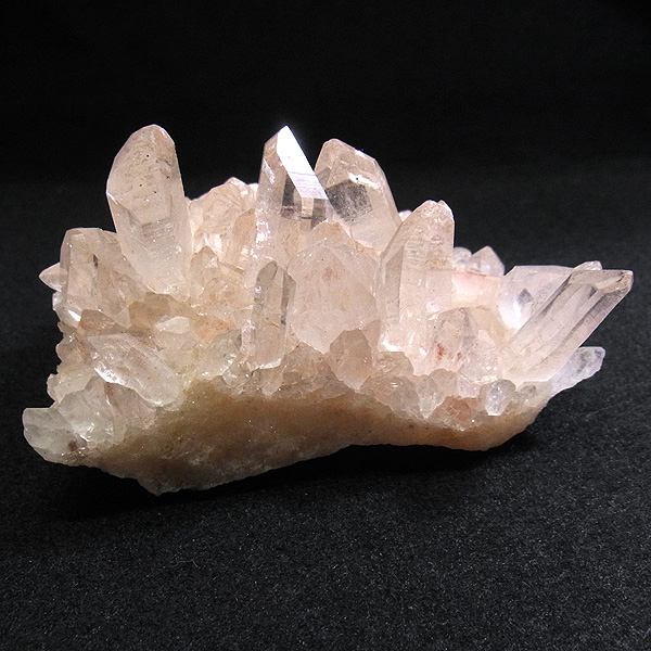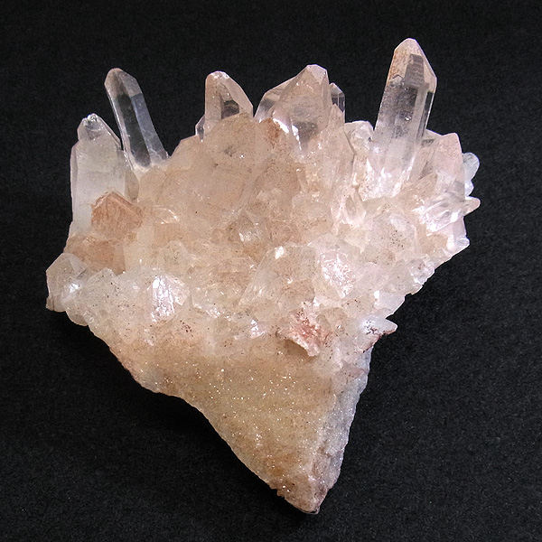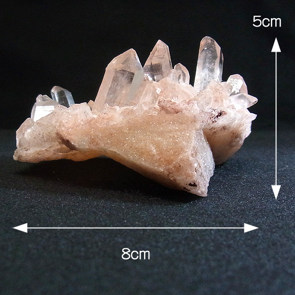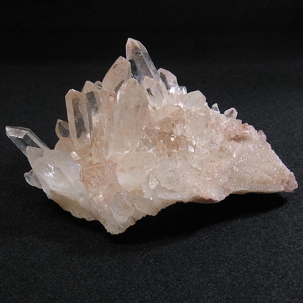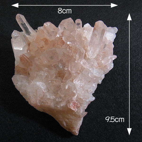 ピンク色の水晶といえばローズクォーツが有名ですが、それとは別で土壌に含まれる赤褐色をした酸化鉄により表面や母岩部がピンク色になっています。