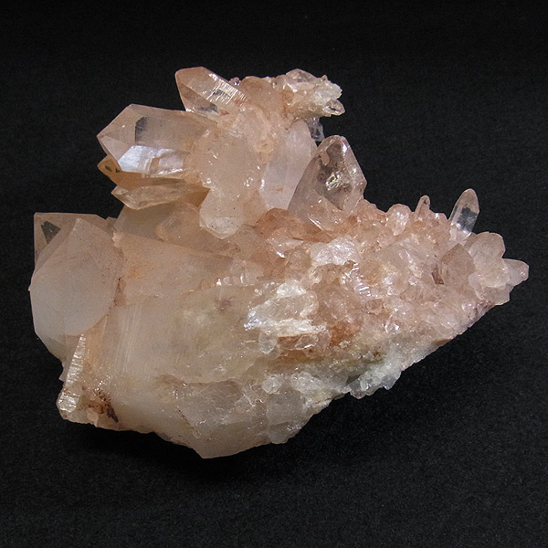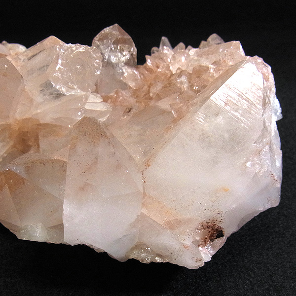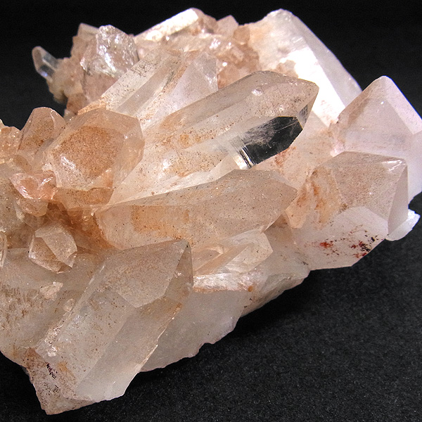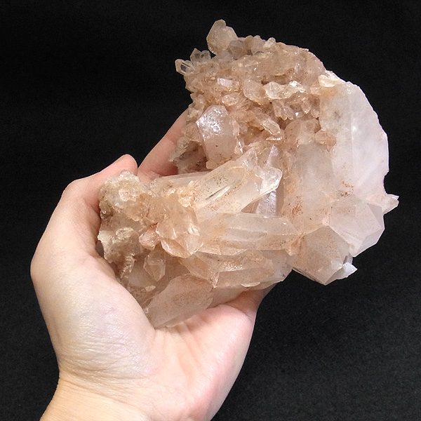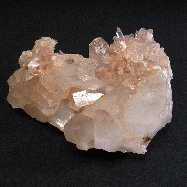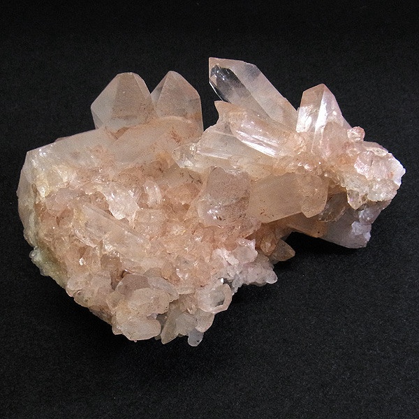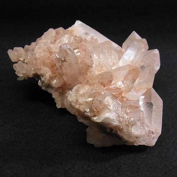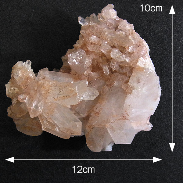 ピンク色の水晶といえばローズクォーツが有名ですが、それとは別で土壌に含まれる赤褐色をした酸化鉄により表面や母岩部がピンク色になっています。