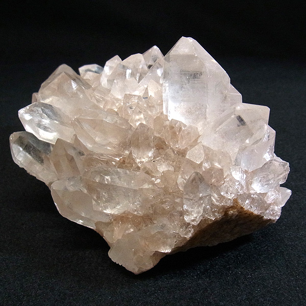 ピンク色の水晶といえばローズクォーツが有名ですが、それとは別で土壌に含まれる赤褐色をした酸化鉄により表面や母岩部がピンク色になっています。