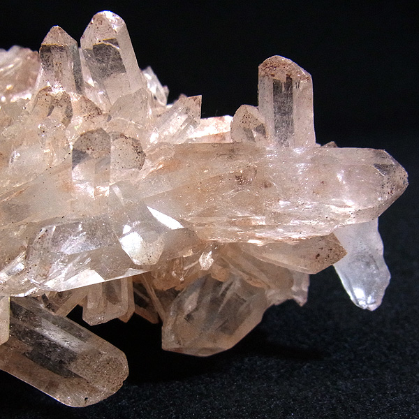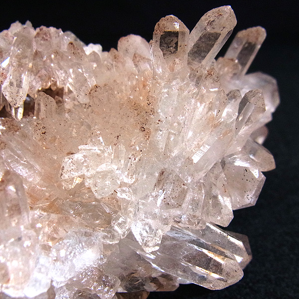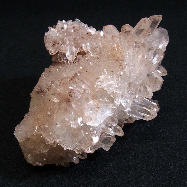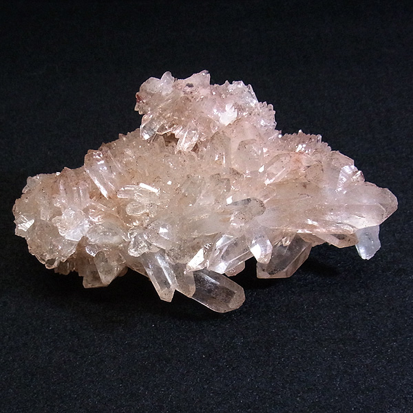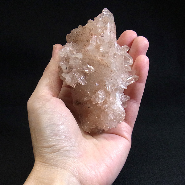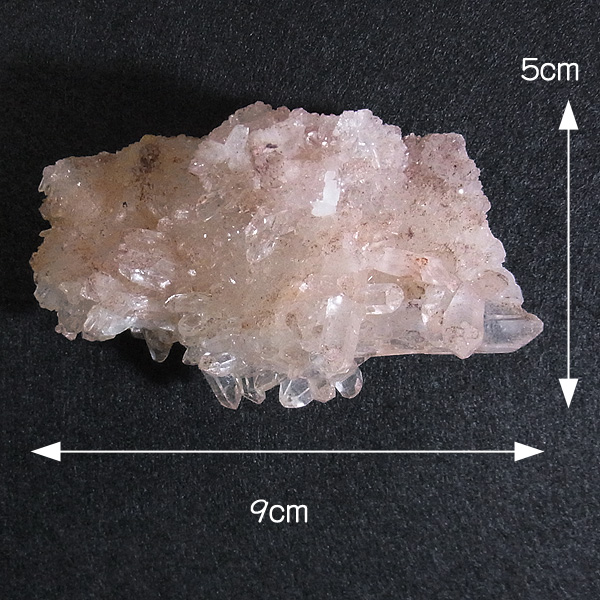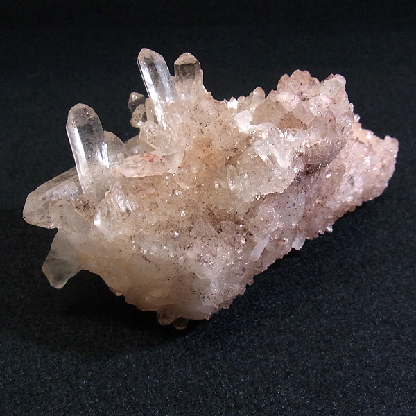 ピンク色の水晶といえばローズクォーツが有名ですが、それとは別で土壌に含まれる赤褐色をした酸化鉄により表面や母岩部がピンク色になっています。