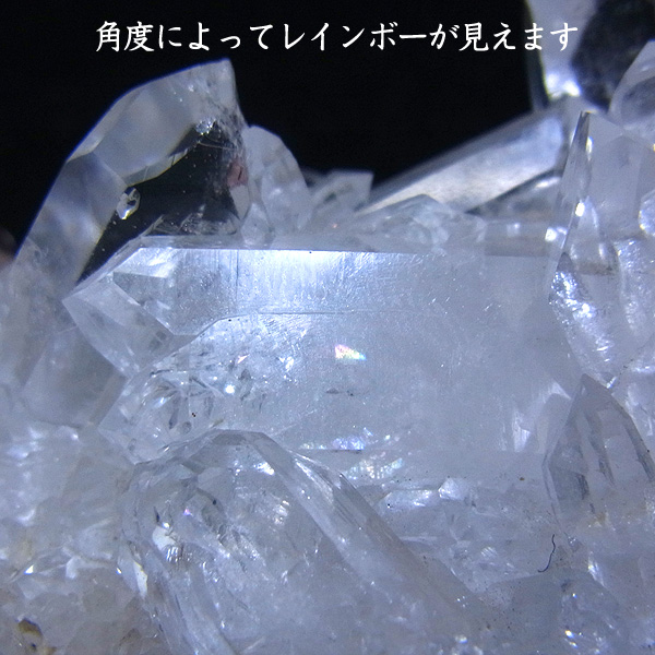 非常に透明度の高い大小様々な結晶が複雑に絡み合い、見る角度によって様々な表情を見せる大変美しいクラスターです。