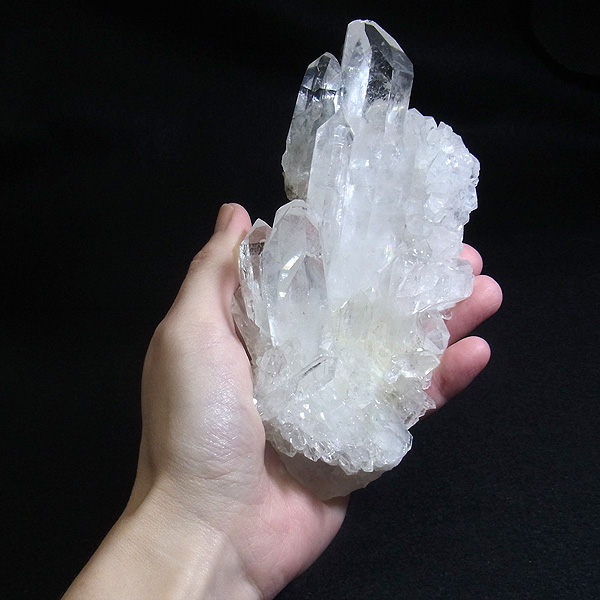 また、水晶柱が放射線状に伸びて立体的な構造を作っているものが多く、「これぞ、水晶クラスター」という形状をしています。