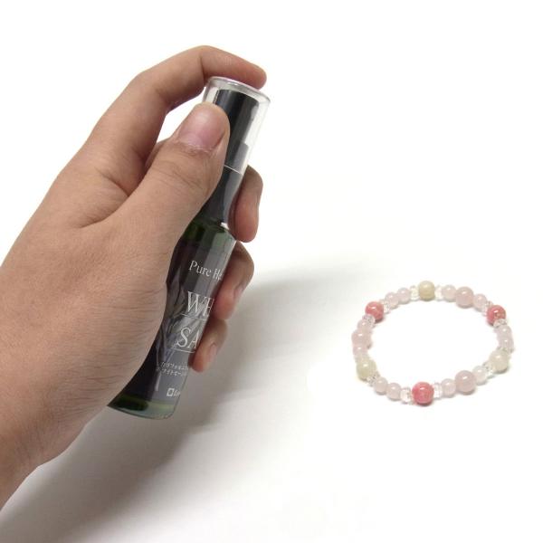 パワーストーンが「疲れているな」と感じた時に、手軽に使うことができます。パワーストーンに向けて、1~2プッシュ。そのあとは、乾いた柔らかい布で、優しく吹拭きとって下さい。