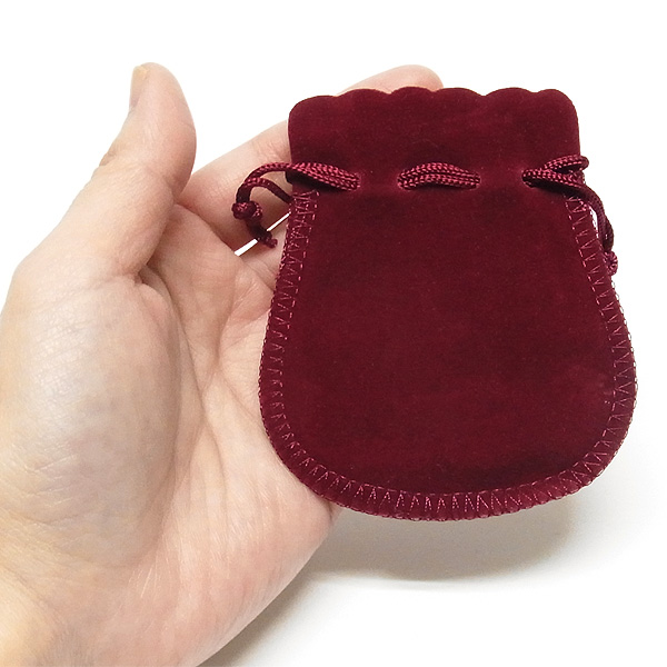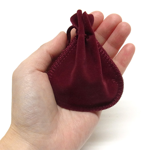 肌触りのいいベルベット調の巾着袋です。