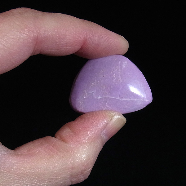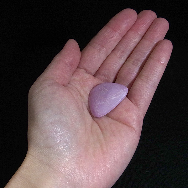 淡い紫色…ピンクから紫に変化していく途中の色、と表現した方がしっくりくるような色味です。硬度は比較的低く劈開性(へきかいせい)があります。