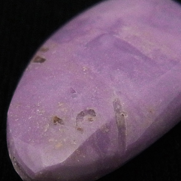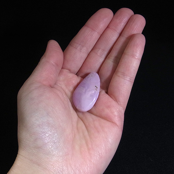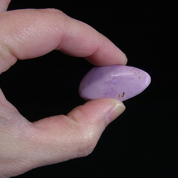 淡い紫色…ピンクから紫に変化していく途中の色、と表現した方がしっくりくるような色味です。硬度は比較的低く劈開性(へきかいせい)があります。