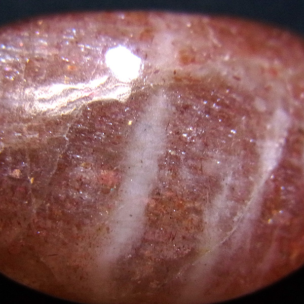 サンストーンと言う名前は鉱物的な性質から名づけられ たものではなく、ムーンストーンの静かな光と対照的 に思えるキラキラした光を持つことから名づけられ た、宝石としての名称です。