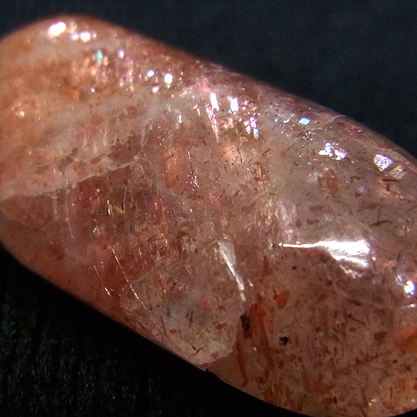 サンストーンと言う名前は鉱物的な性質から名づけられ たものではなく、ムーンストーンの静かな光と対照的 に思えるキラキラした光を持つことから名づけられ た、宝石としての名称です。