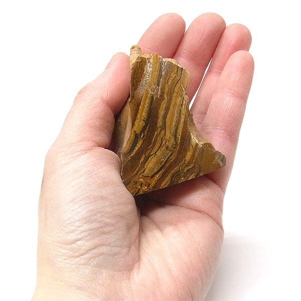 断面にはタイガーアイ一番の特徴である「虎目模様」がまるで地層のように美しく入っています。