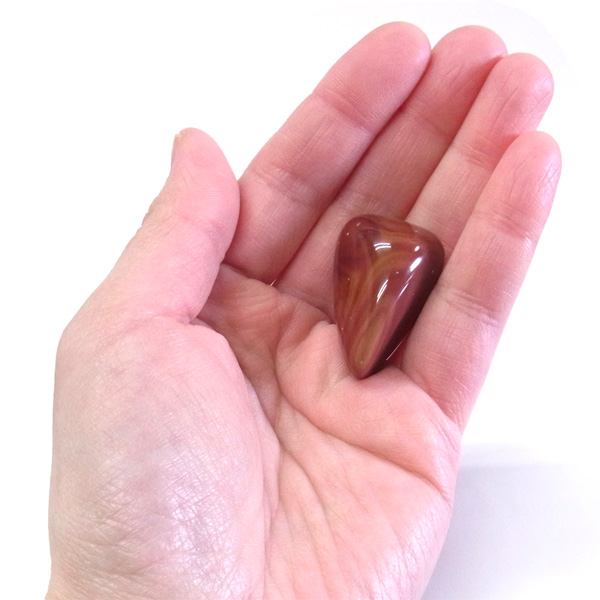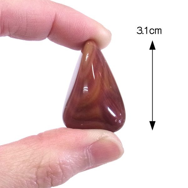 グランドキャニオン産のワンダーストーン、タンブルです。赤みを帯びた色合いのものをグランドキャニオン・ワンダーストーンと呼びます。赤やオレンジの明るい色彩からなるマーブル模様が特徴的です。鉱物学ではライオライトの一種で緑色や白系、グレーなどいろいろな色があるようですが、赤やオレンジ色の物をグランドキャニオンワンダーストーンとして特別視しているようです。