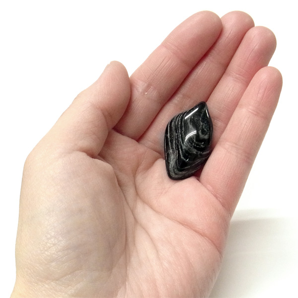 アメリカ産のゼブラアゲート、タンブルです。ゼブラアゲートは名前の通りシマウマのような色、柄のアゲートをいいます。グレートブラックからなる洗練された縞模様が、いかにもアメリカの石・・・という感じです。古いネイティヴ達の持ち物にもこの石が装飾品として発見されることがあり、アメリカと言う土地に深くなじんでいたことが分かります。