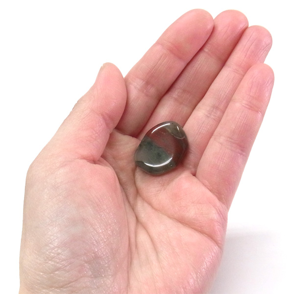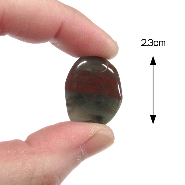 スワジランド産のセフトナイト、タンブルです。セフトナイトまたはヴァルカンジャスパーと呼ばれております。セフトナイトはマーカサイトの成分を含むカルセドニーとシャスパーの混合石です。赤い斑点は鉄分によるものです。インド産のブラッドストーンに似ていることから、流通名としてアフリカンブラッドストーンとも呼ばれております。
