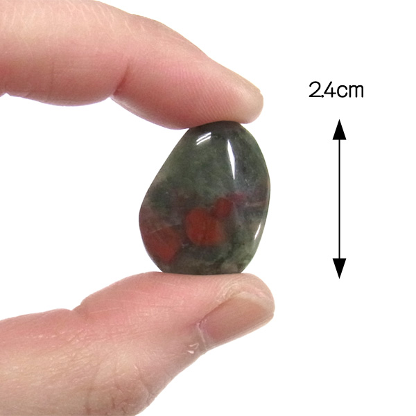 スワジランド産のセフトナイト、タンブルです。セフトナイトまたはヴァルカンジャスパーと呼ばれております。セフトナイトはマーカサイトの成分を含むカルセドニーとシャスパーの混合石です。赤い斑点は鉄分によるものです。インド産のブラッドストーンに似ていることから、流通名としてアフリカンブラッドストーンとも呼ばれております。