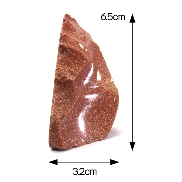 16世紀にイタリアのガラス工房で溶融したガラス材料に銅の鍋を誤って落としてしまったところ、その出来が大変良かったことからゴールドストーンとして世に広まりました。偶然の産物として完成された人工石ですが、不透明で茶色の地色に銅と思われる金属光沢が映え、とても美しい石です。そのきれいな輝きから長く幸福・繁栄をもたらすと言われています。持つ人に出会いや金運などの良いチャンスを与えてくれると言われる石で、努力を実らせ、ポジティブな気持ちにさせてくれると言われています。また心の疲れを癒してくれる効果や、精神面の強化に効果があらわれるといわれています。