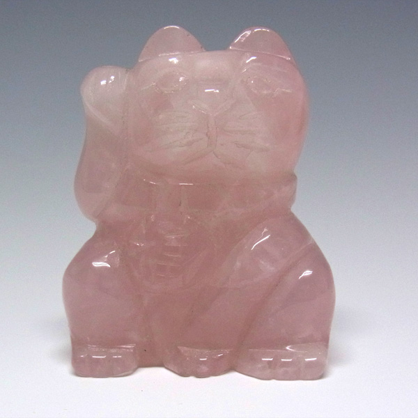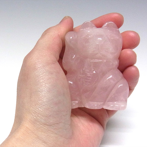 ローズクォーツ 招き猫 置物(中)