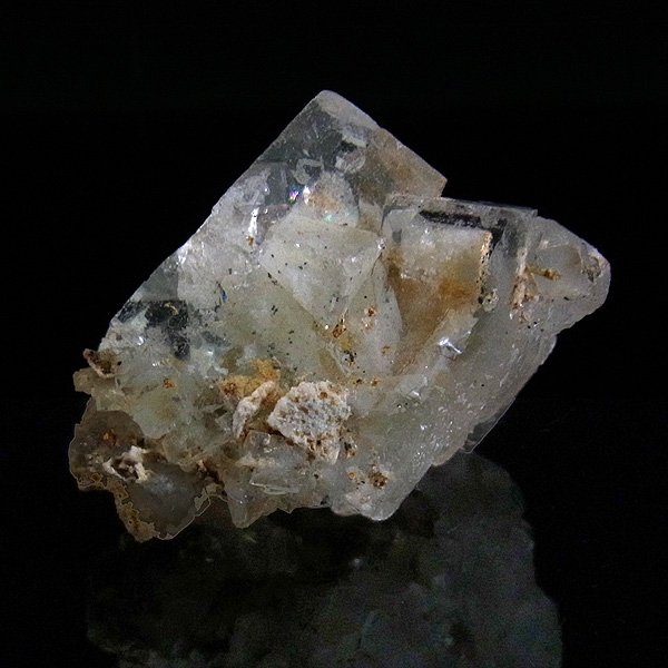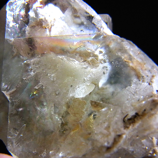 フローライトにはさまざまな色合いがありますが、ダルネゴルスク産のフローライトは、不純物がなく、純粋なフローライトなので、無色透明で大変クリアーなことが特徴です。また、特徴的な結晶形を持ち、内部には大変綺麗なレインボーが見られます。水晶やカルサイト、パイライトなどの小さな結晶と共生しています。クリアな面からは、内側のインクルージョンや母岩のかけらが綺麗に確認できます。