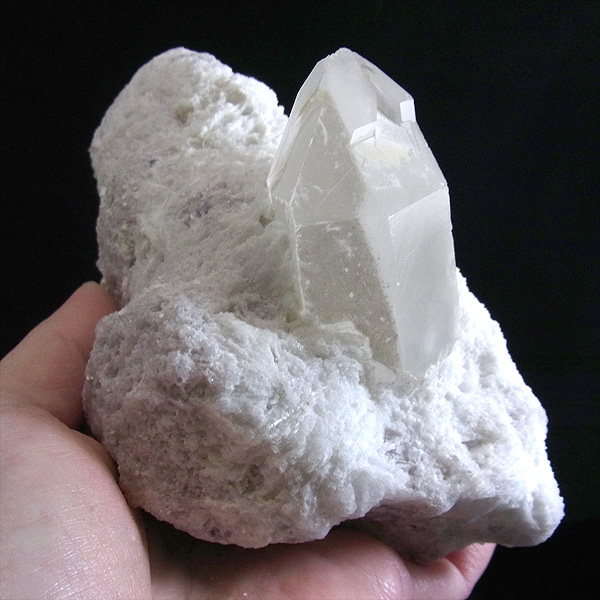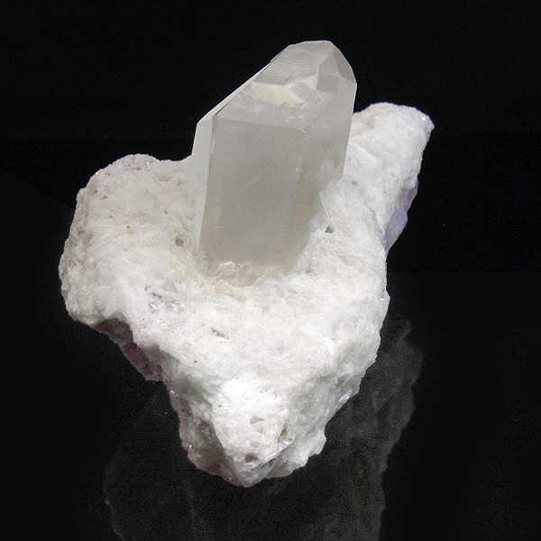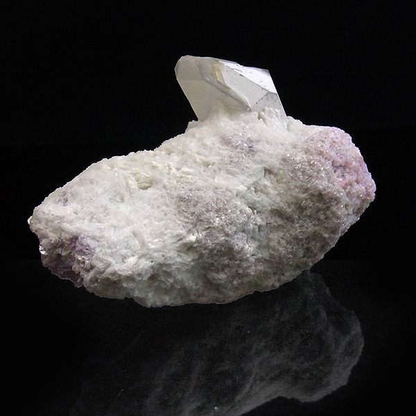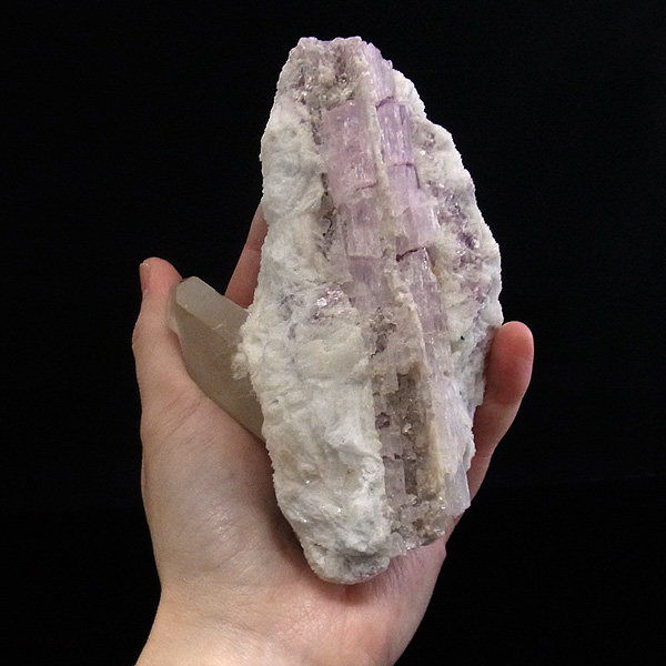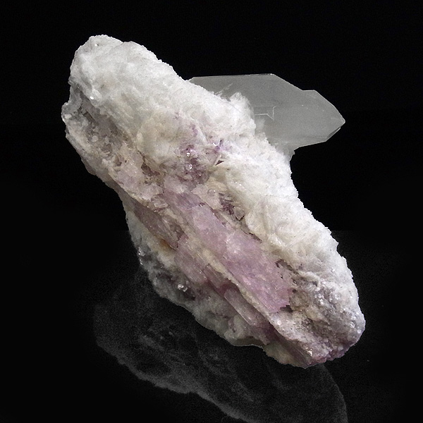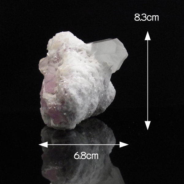 母岩の石英の隙間に沿うようにクンツァイト(リシア輝石)が、反対側には水晶が結晶した、珍しい原石です。