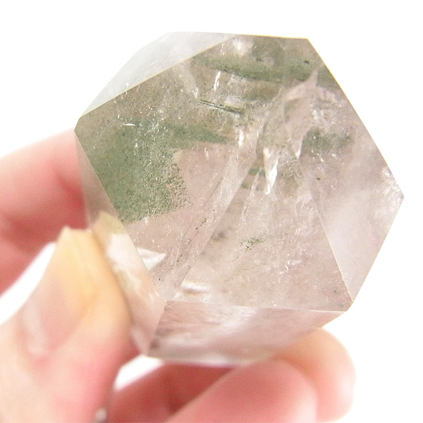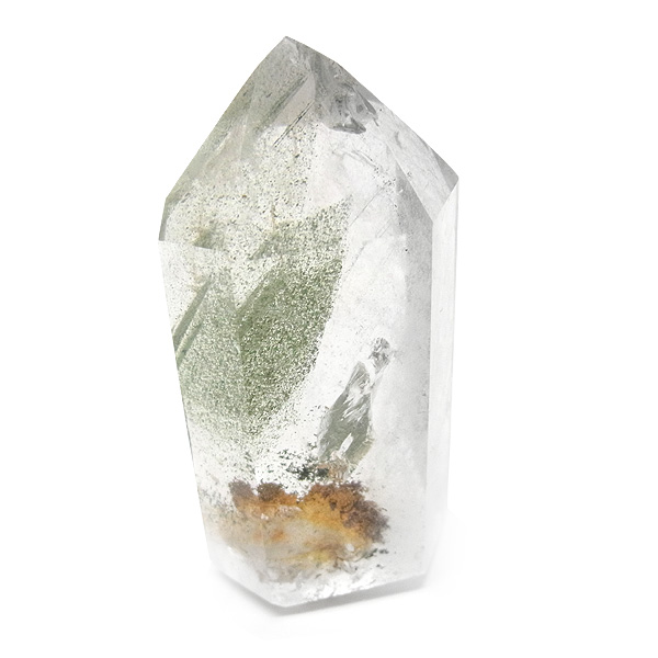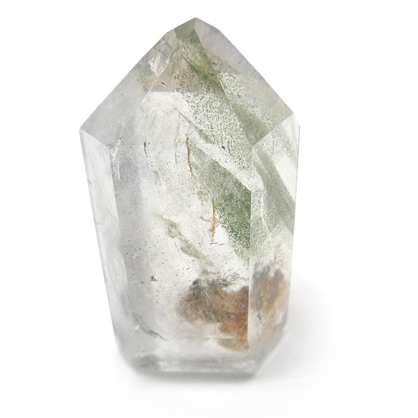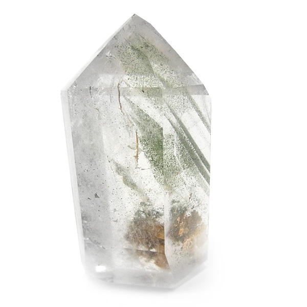 ファントムクォーツは、ガーデンクォーツの一種で、水晶が成長していく過程で、水晶の成長が一時的に停止した際に、その表面に別の鉱物などが付着し、また水晶が再び成長を始めると結晶の中に斜めや三角、山型の模様ができます。