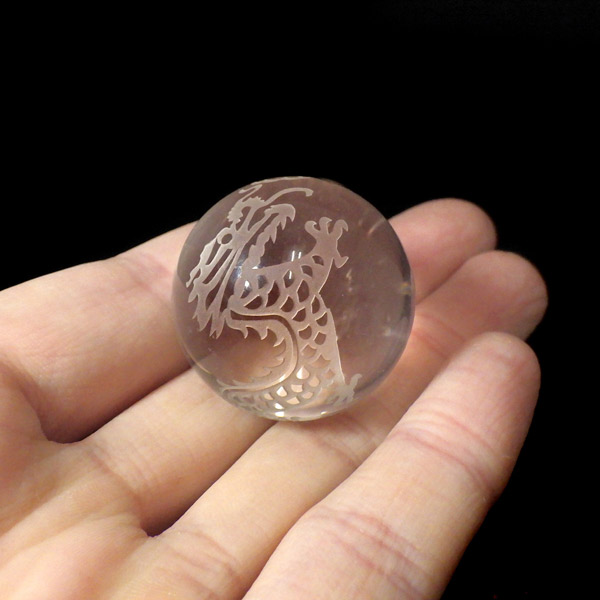 透明度の高いブラジル産水晶の表面に龍の彫刻を施したアイテムです。 ビーズではなく球体でお部屋に飾っていただくアイテムです。 水晶と龍は相性が良いとされ、水晶を使った龍のアイテムがよく作られています。 古くから願いを叶えてくれる象徴として、龍は縁起の良いアイテムでご家庭やオフィスなど気の流れを良くしてくれるでしょう。