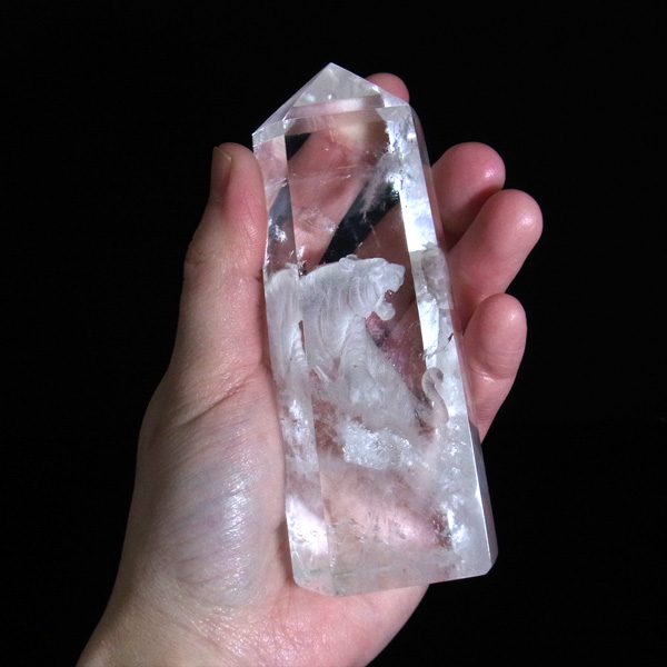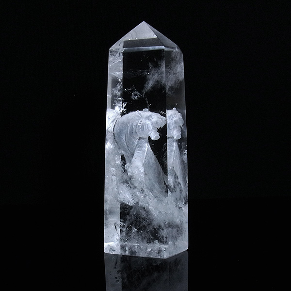 虎 裏彫り 水晶 ポイント 高11cm