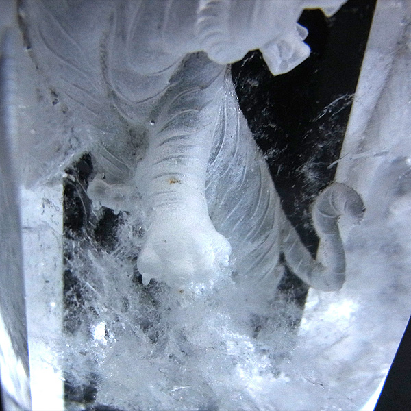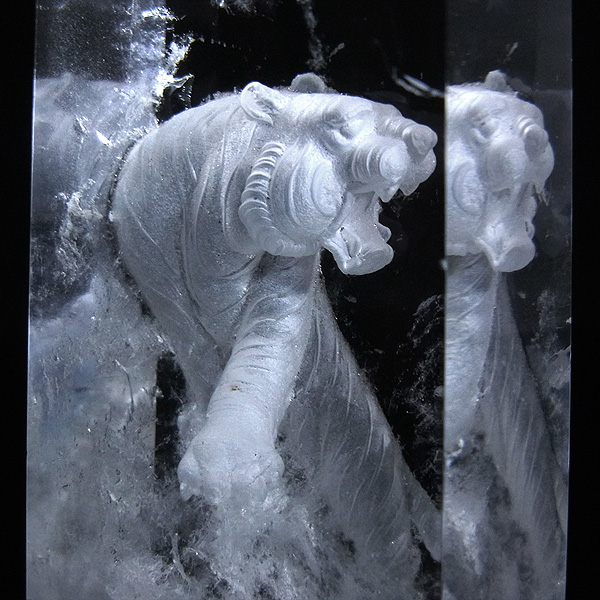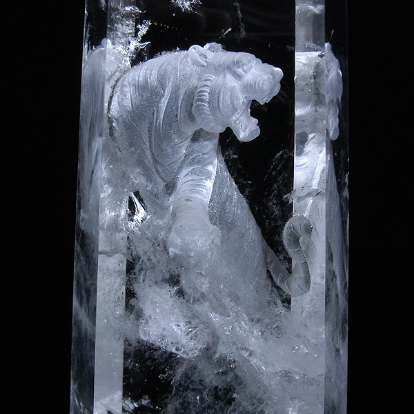 本水晶にゆうゆうとした姿の虎が裏彫りされています。