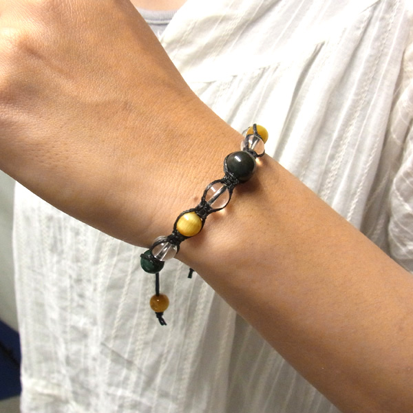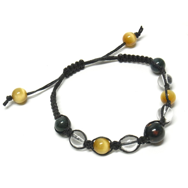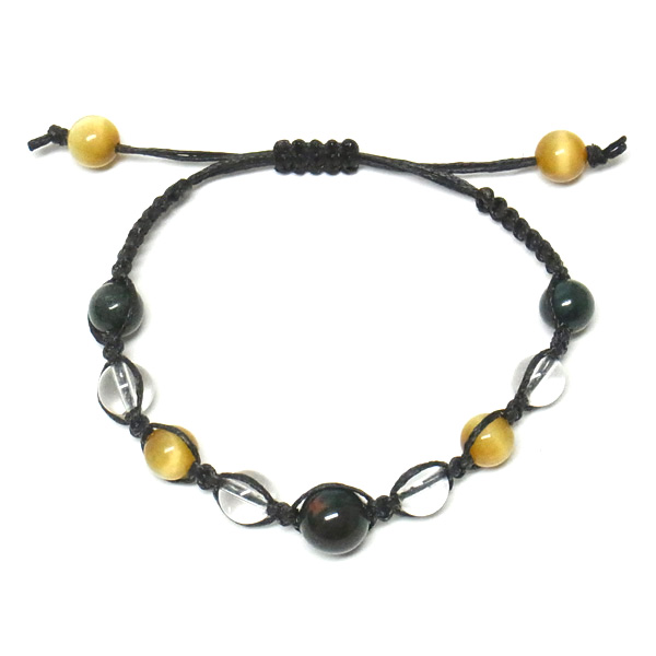 編み込みブレスレット ブラッドストーン×ゴールデンタイガーアイ×水晶