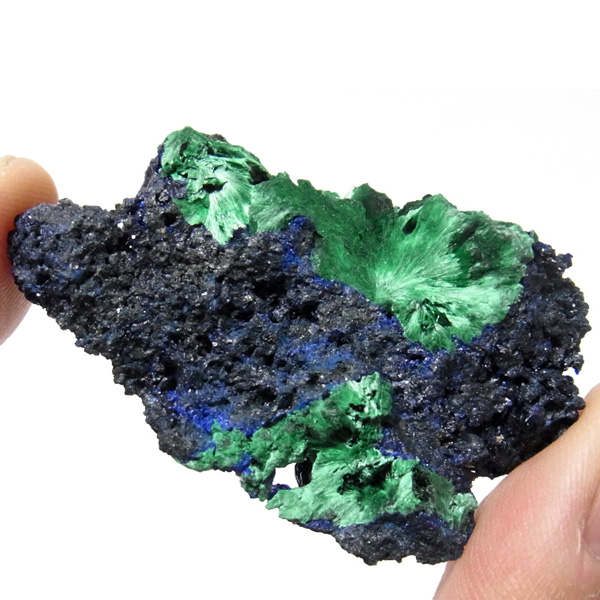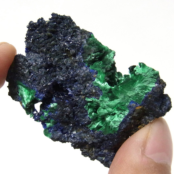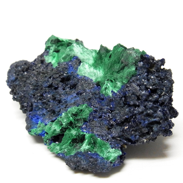 モロッコ産のアズロマラカイト原石です。高品質のアズライトのキラキラした結晶とマラカイトの艶やかな光沢が同時に楽しめます。アズライトの青色とマラカイトの緑色が混ざり合った芸術的な美しさを持っています。